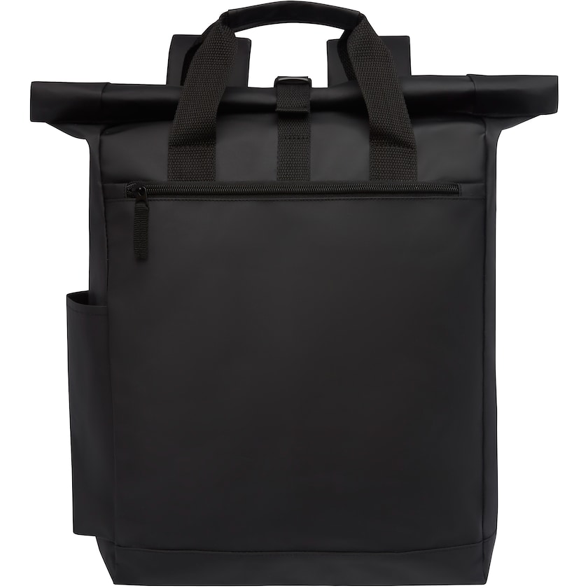 Wasserdichter Computerrucksack im komplett schwarzen Design. Im Inneren befindet sich ein gepolstertes Fach für Laptops bis 15 Zoll. Die Schultergurte sind gepolstert und verstellbar. Eine perfekte Wahl für alle, die einen wasserdichten Rucksack bedrucken möchten.