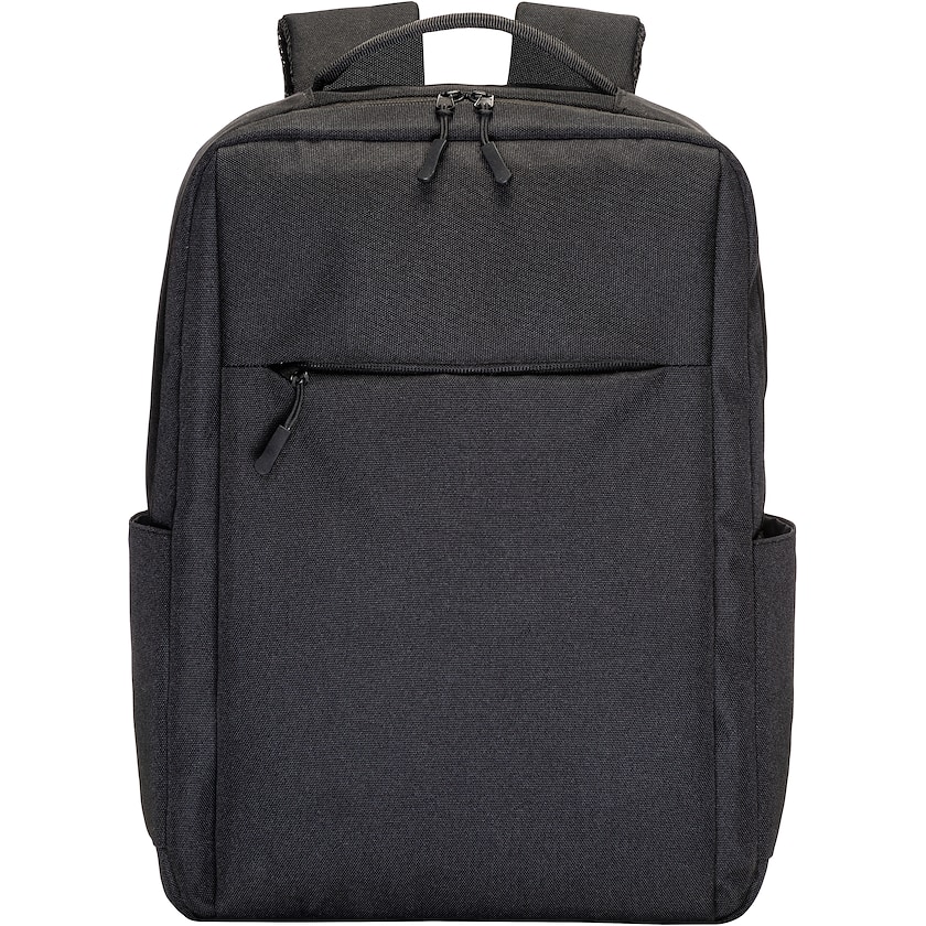 Preiswerter Laptop-Rucksack aus recyceltem Material. Im Inneren befindet sich ein gepolstertes Fach für einen 15-Zoll-Laptop. Auf der Vorderseite ist eine große Reißverschlusstasche angebracht und es gibt Seitentaschen für Wasserflaschen. Die Rückseite und die Schultergurte sind gepolstert. Der Rucksack kann an einem Trolley befestigt werden.