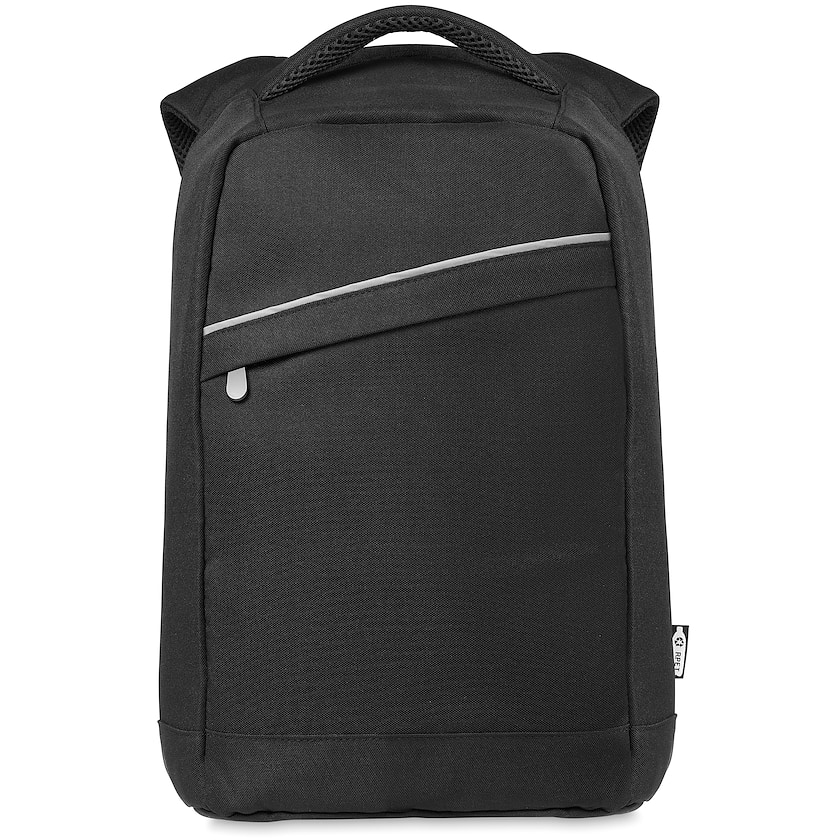 Umweltfreundlicher Computerrucksack mit stilvollem Design. Im Inneren befindet sich ein gepolstertes Fach für einen 13-Zoll-Laptop. Der Rucksack besteht aus rPET, also recycelten PET-Flaschen. Das Hauptfach hat hinten einen Reißverschluss für erhöhten Diebstahlschutz.