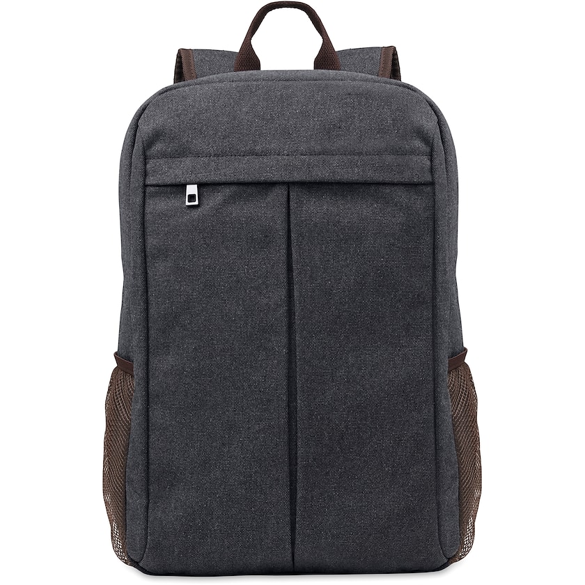 Computerrucksack mit schwerem Canvas-Stoff. Im Inneren befindet sich ein gepolstertes Laptopfach für einen 15 Zoll Laptop. Auf der Vorderseite befindet sich eine Reißverschlusstasche für kleinere Gegenstände.