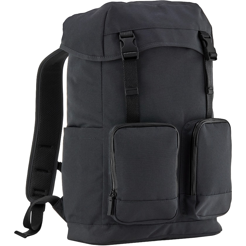 Sportliche Computertasche aus recyceltem Polyester. Der Stoff ist wasserabweisend und besteht zu 100 % aus GRS-zertifiziertem Polyester. Im Inneren befindet sich eine gepolsterte Tasche für einen 16-Zoll-Laptop. Vorne befinden sich zwei Reißverschlusstaschen und an den Seiten befinden sich Taschen mit Magnetverschluss. Auf der Rückseite befindet sich eine versteckte Tasche für Wertsachen.