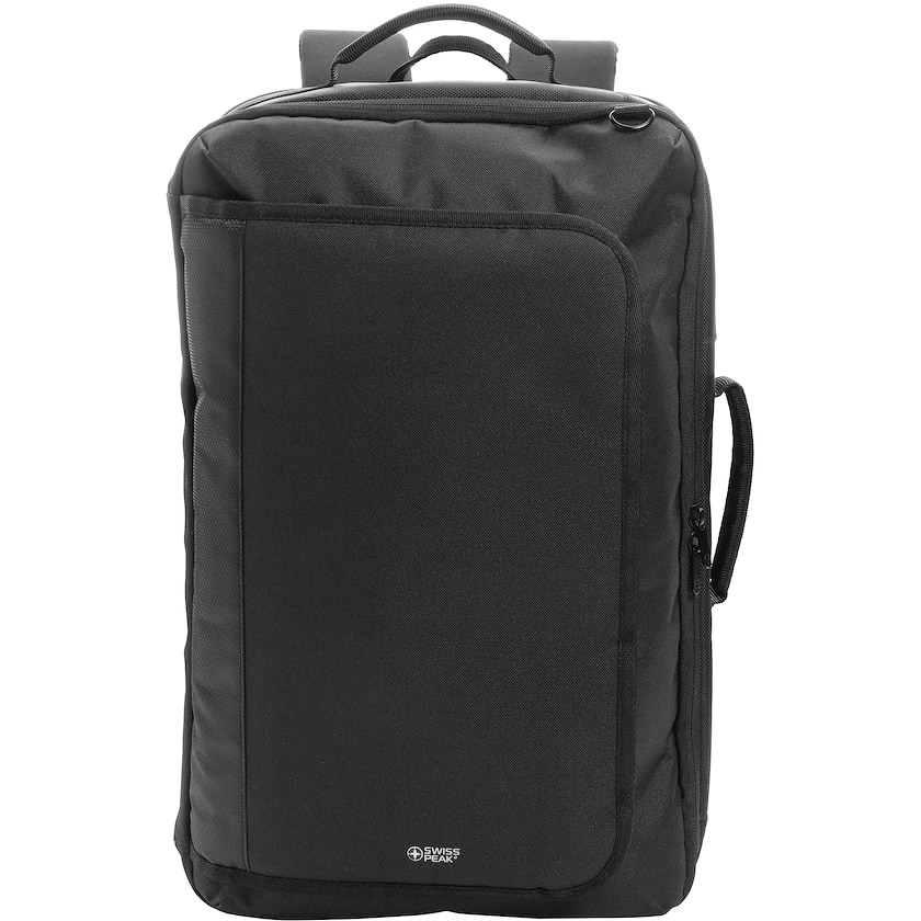 Multifunktionaler Computerrucksack von Swiss Peak. Swiss Peak Steinhausen kann auf dem Rücken, über der Schulter, crossbody oder in der Hand getragen werden. Je nachdem wie schwer die Ladung ist. Im Inneren befindet sich ein gepolstertes Fach für einen 15,6-Zoll-Laptop. Auf der Vorderseite befindet sich eine Tasche für Technikzubehör. Der Rucksack verfügt außerdem über RFID-geschützte Aufbewahrungstaschen.