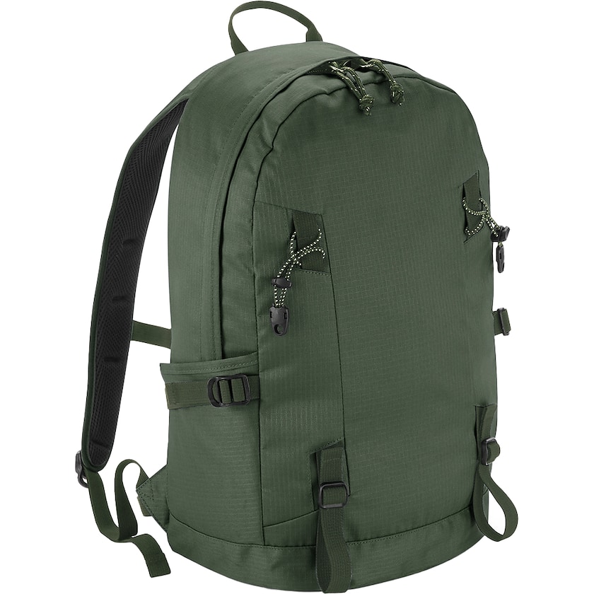 Hochwertiger Rucksack, der sich für Ausflüge in die Natur eignen. Der Stoff ist wasserfest. Innen gibt es ein Reißverschlussfach mit Schlüsselring und außen sind zwei erweiterbare Seitentaschen. Schultergurte und Rücken sind gepolstert und können atmen. Der Rucksack hat außerdem einen Taillengurt und einen Brustgurt.