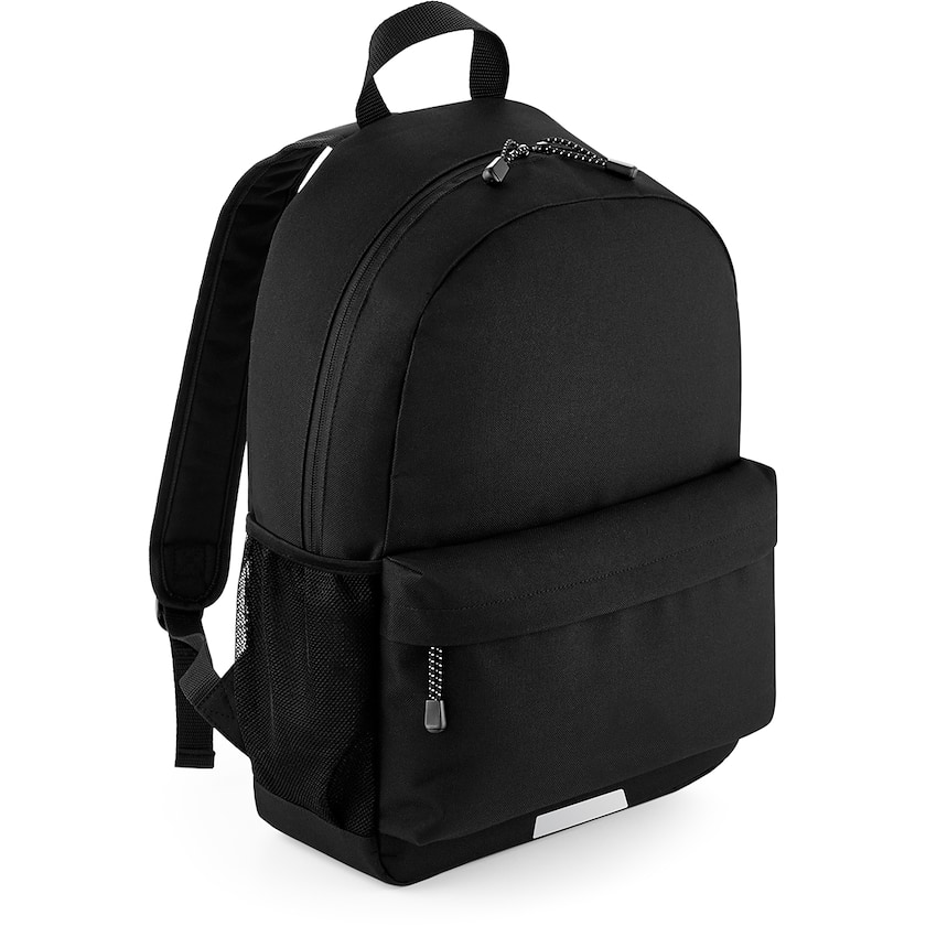 Hochwertiger Rucksack mit großer Fronttasche. An den Seiten des Rucksacks gibt es Netzfach für Trinkflaschen und vorne befindet sich ein Reflektor. Innen gibt es ein Etikett für den Namen. Rücken und Träger sind für mehr Komfort gepolstert.