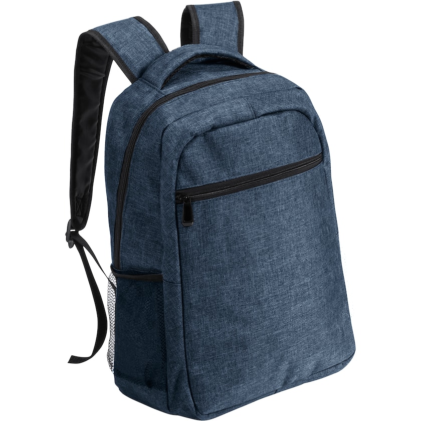 Moderner Rucksack mit leicht gemustertem Stoff. Rücken und Tragegurte sind für mehr Komfort gepolstert. Vorne befindet sich ein Fach mit Reißverschluss.