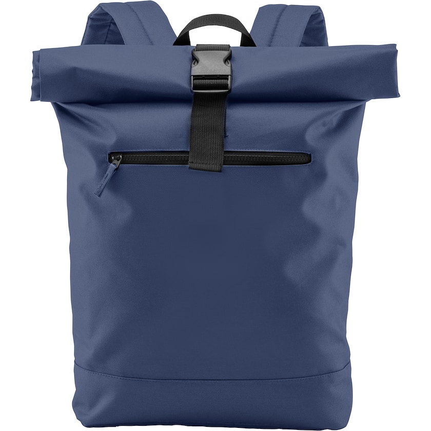 Rolltop-Rucksack mit gepolstertem Fach für einen 17-Zoll-Laptop. Colburn wird aus rPET, also recyceltem Polyester, hergestellt. Rücken- und Schultergurte sind gepolstert. Vorne befindet sich eine Tasche mit Reißverschluss. Es ist nur ein 1-farbiger Druck möglich.