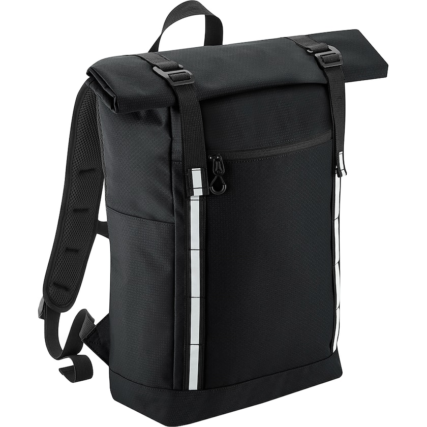 Stromlinienförmiger Rolltop-Rucksack. Im Inneren befindet sich ein gepolstertes Fach für Laptops bis 15,6 Zoll. Auf der Vorderseite befinden sich Reflektoren. Der Rucksack verfügt über intelligent gestaltete Schnallen und Halterungen, die auch mit Handschuhen einfach zu bedienen sind. Die Rückwand ist ergonomisch geformt und atmungsaktiv. Der Stoff erhält eine wasserabweisende Behandlung, die ihn effektiv widerstandsfähig gegen Feuchtigkeit macht.