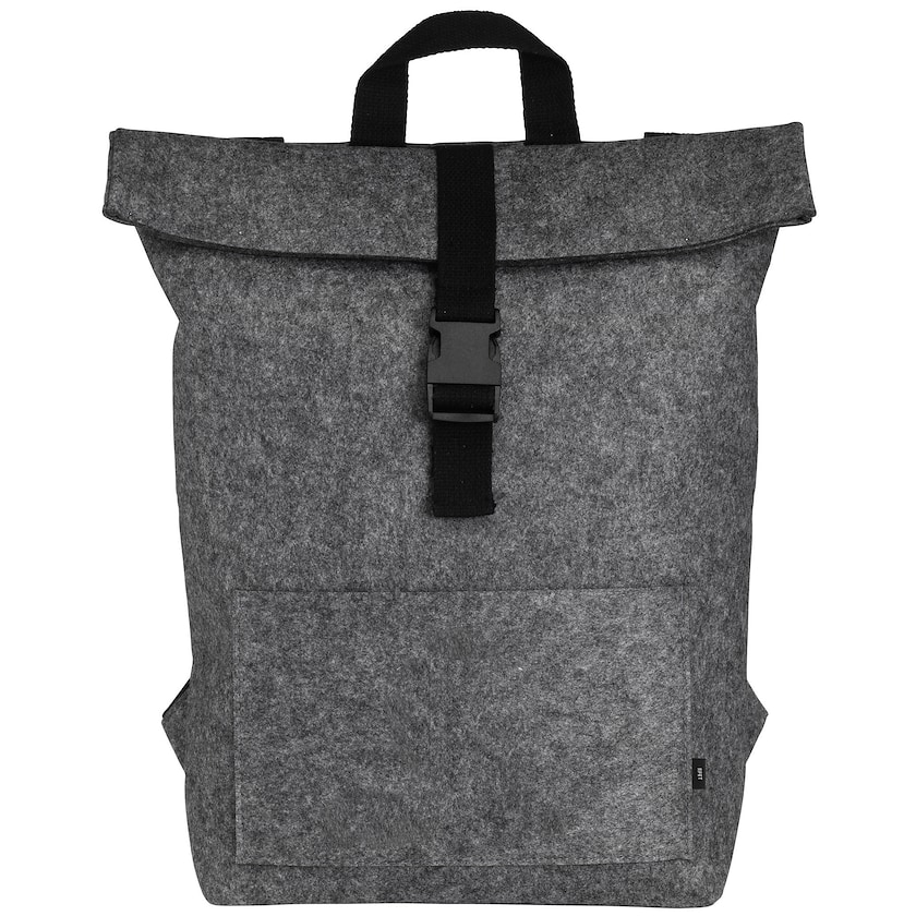 Rolltop-Rucksack mit Filzstoff aus recyceltem Material. Der Stoff wird aus recycelten PET-Flaschen hergestellt und ist äußerst strapazierfähig. Auf der Vorderseite befindet sich eine kleinere Aufbewahrungstasche. Es ist nur 1-farbiger Druck möglich.