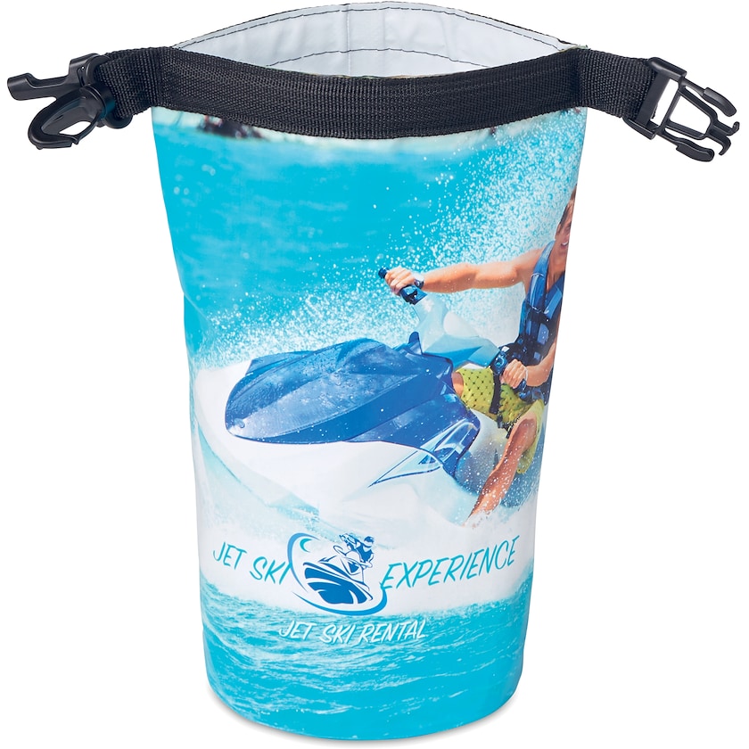 Kleiner wasserdichter Seesack. Der Seesack besteht aus 0,36 mm PVC und fasst 1,5 Liter. Laden Sie einfach die Druckvorlage herunter und designen Sie Ihren einzigartigen Seesack. Da der Seesack auf Bestellung produziert wird, ist die Lieferzeit etwas länger als gewöhnlich. Mindestbestellmenge ist 150 Stück.