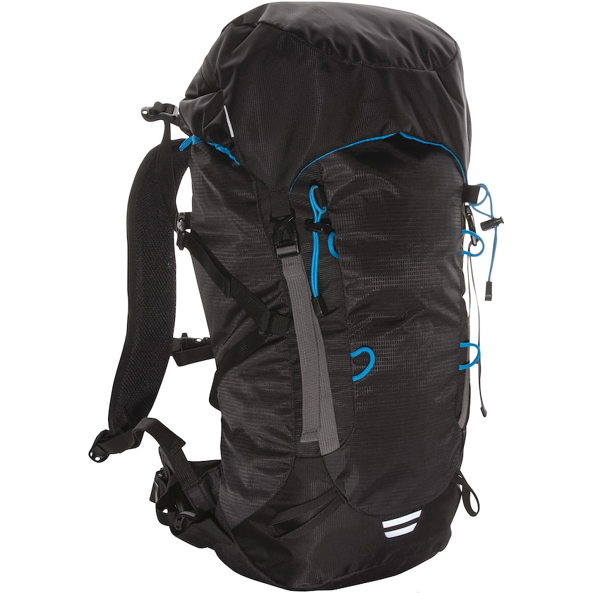 Großer Wanderrucksack, fasst 40 Liter. Der Rucksack ist aus strapazierfähigem Polyester gefertigt und verfügt über praktische Details wie einen integrierten Regenschutz. In der gleichen Serie gibt es auch eine Gürteltasche und Wanderrucksäcke in anderen Größen.