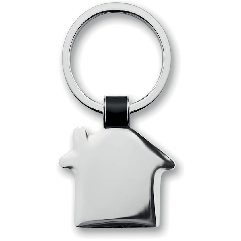 Schlüsselanhänger aus elegantem Metall, in Form eines Hauses. Markierung erfolgt mit Lasergravur. Wird in schwarzer Geschenkschachtel geliefert.