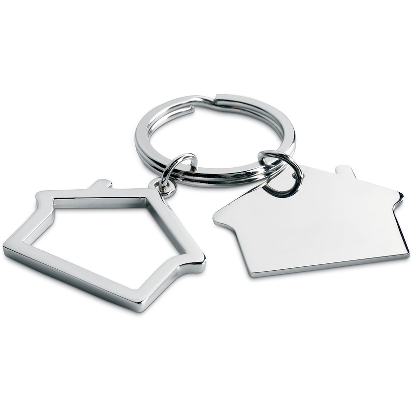 Metallschlüsselanhänger in Hausform. Der Schlüsselanhänger wird in einer schwarzen Geschenkschachtel geliefert.