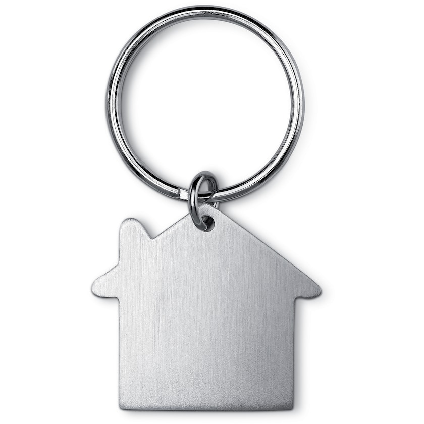 Schlüsselanhänger in Form eines Hauses, aus gebürstetem Metall. Perfekt für Makler und alle, die in der Baubranche tätig sind.