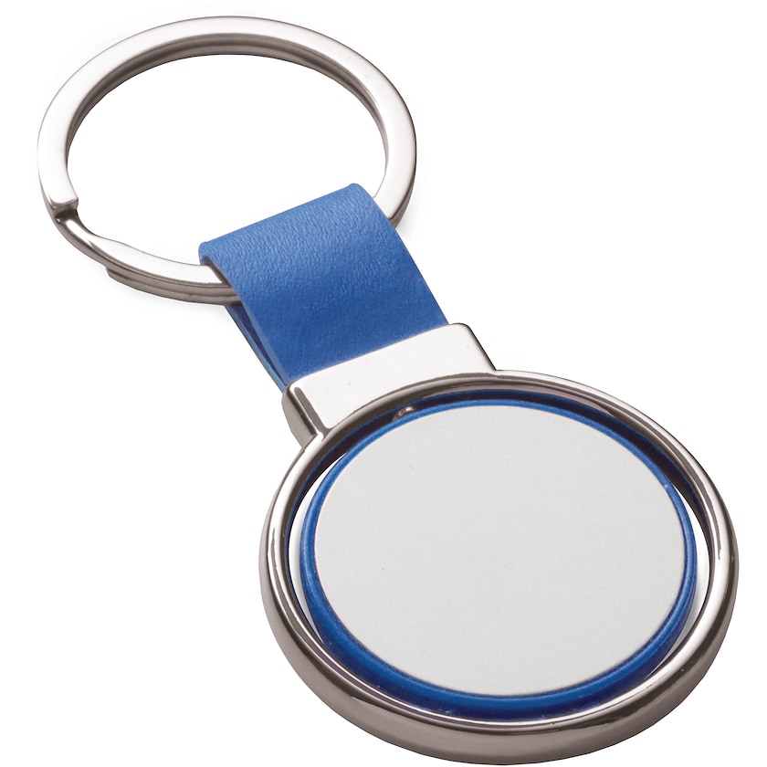 Uniker Schlüsselanhänger aus Metall und Kunstleder. Das Mittelstück kann gedreht werden, und das macht Silva zu einem interessanten und ausgefallenen Schlüsselanhänger. Die Markierung erfolgt mit Lasergravur.