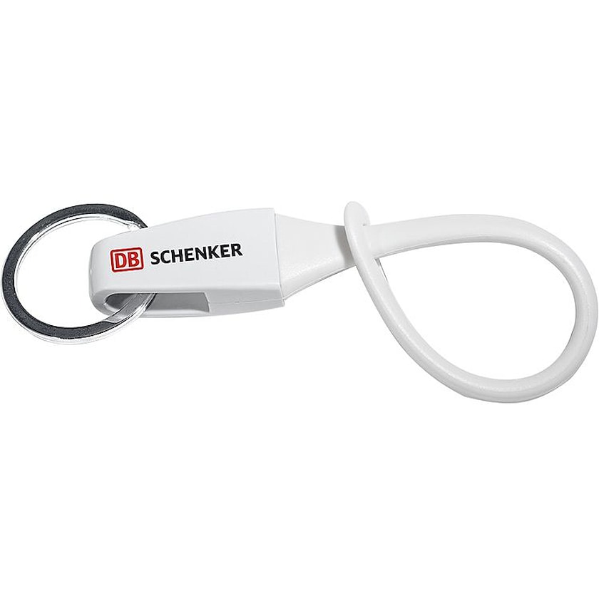 Schlüsselanhänger mit Handgelenkschlaufe aus Silikon. Der Druck erfolgt auf dem Plastikteil des Schlüsselanhängers.
