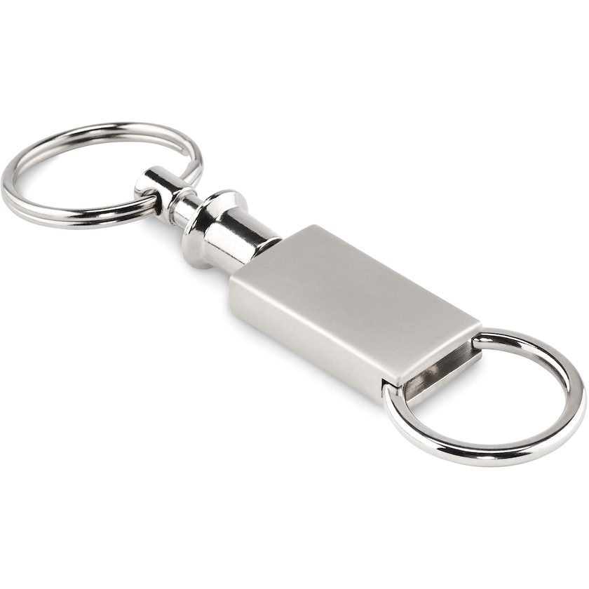 Intelligenter 2-in-1-Schlüsselanhänger mit Lasergravur. Ziehen Sie den Schlüsselring auseinander und Sie haben plötzlich zwei Schlüsselringe.