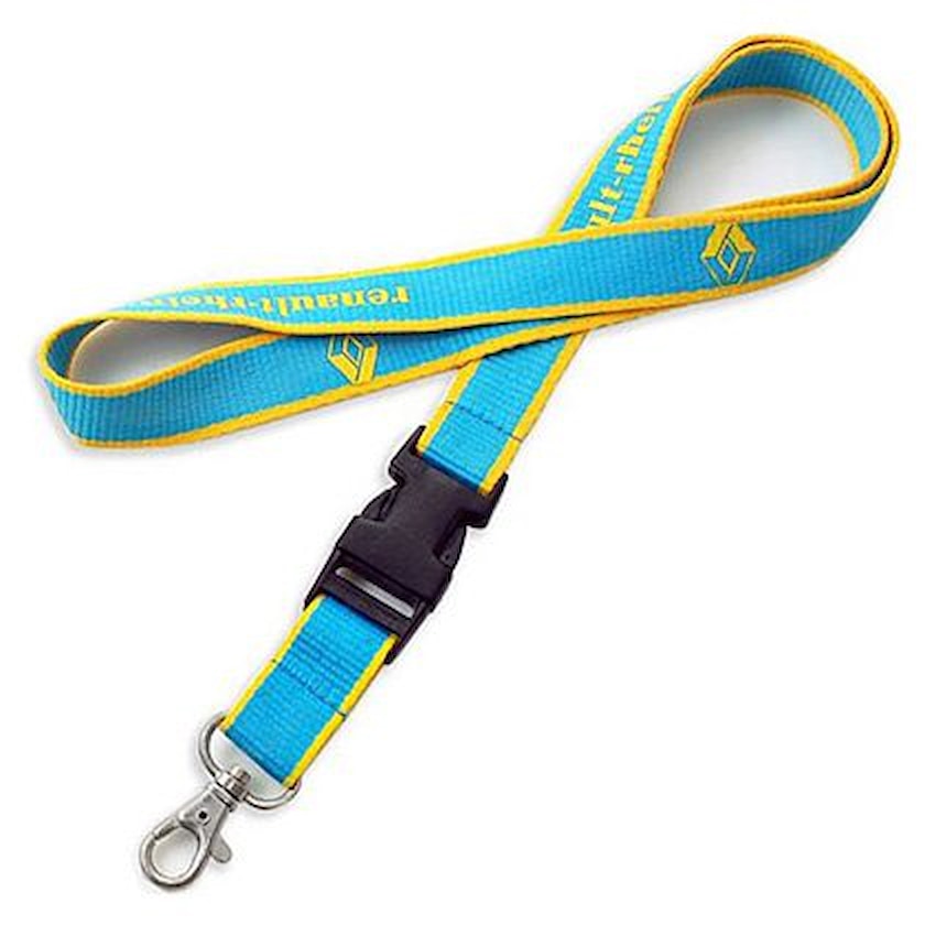 Gedrucktes Schlüsselband mit Kontrastrand in unterschiedlichen Farben. Sie bestimmen die Farbe des Schlüsselbandes und des Kontrastbandes (zum Beispiel gemäß Pantone-Code). Das wird nicht als Druck berechnet, sondern ist kostenfrei.