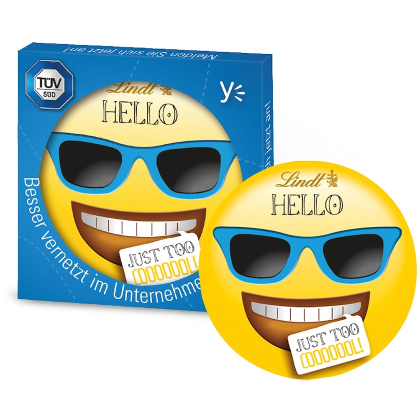 Beliebter Lindt Hello Emoti. Die Originalverpackung wird in einer Schachtel platziert, die nach Ihren Wünschen bedruckt wird. Laden Sie die Druckvorlage herunter und schaffen Sie Ihre ganz eigene Verpackung. Lindt Hello Emoti ist eine Schokolade, die für gute Laune sorgt. Mit anderen Worten, perfekt für Ihre Kunden! Gemischte Motive.