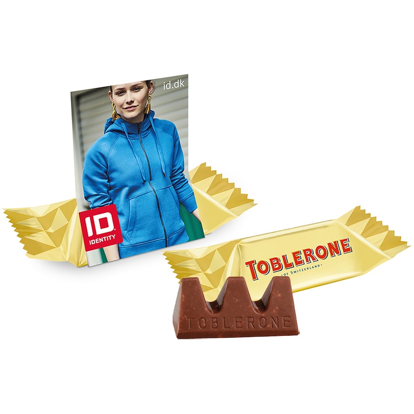 Toblerone Mini mit extragroßer Banderolle. Die Banderolle wird nach Ihren Wünschen bedruckt.