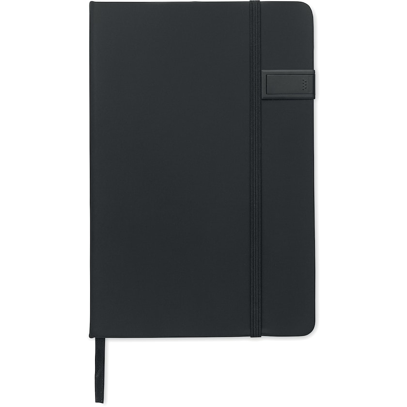 Notizbuch mit 16 GB USB-Stick. Das Notizbuch verfügt über einen festen Einband. Die 80 linierten Blätter bestehen aus recyceltem FSC-zertifiziertem Papier. Der Einband besteht teilweise aus recyceltem Material.