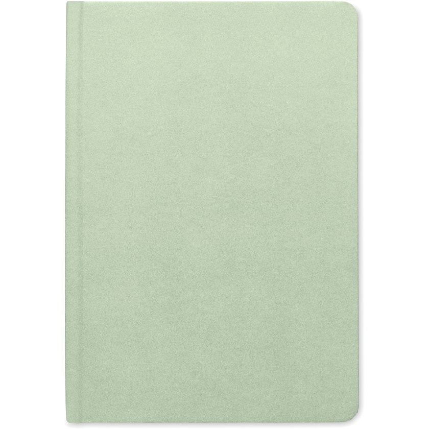Notizbuch mit fstem Einband aus Zuckerrohr und Papier. Das Notizbuch enthält 160 linierten Seiten. Der Einband besteht aus einer umweltfreundlichen Mischung aus 65 % Zuckerrohr und 35 % Papier (fester Einband).