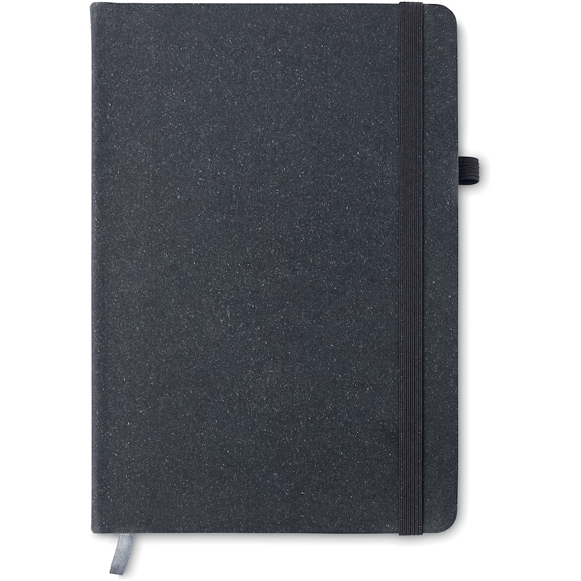 Notizbuch mit Umschlag aus wiedergewonnenem PU. Cambone enthält 80 linierte Blätter. Das Notizbuch wird mit einem elastischen Band verschlossen.