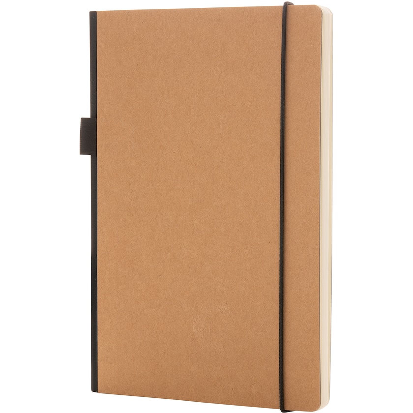 Hochwertiges Notizbuch aus FSC-zertifiziertem Papier. Das Buch hat einen festen Einband und enthält 80 linierte Blätter. Auf der Rückseite finden Sie Informationen zur FSC-Zertifizierung.