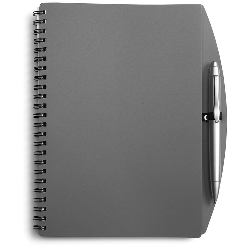 Notizblock der Größe A5 mit getöntem Umschlag und dazugehörigem Stift.
