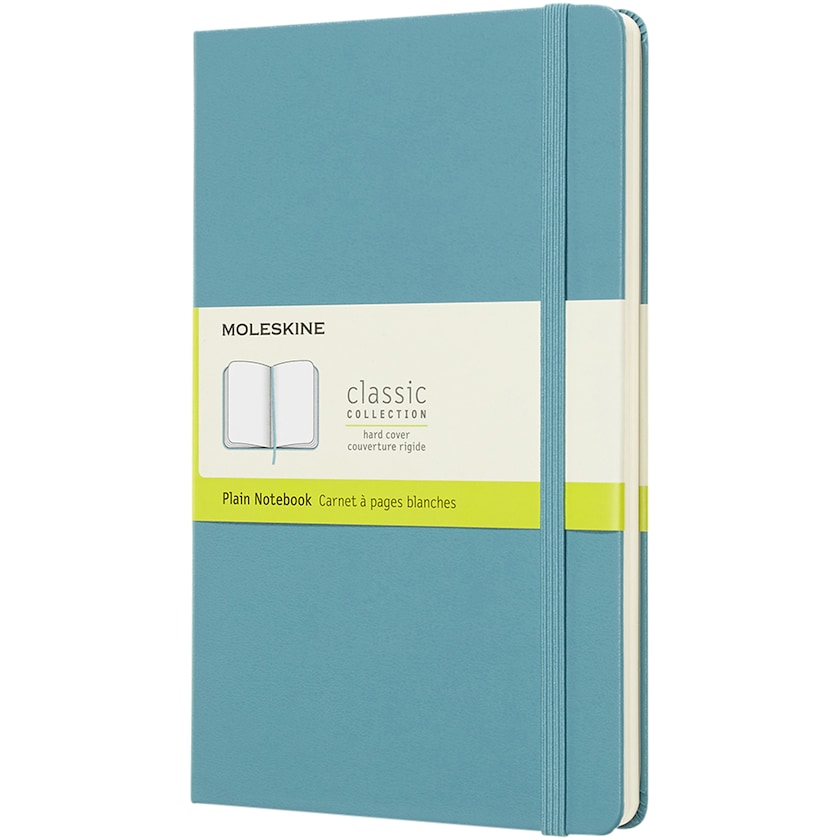 Gebundeners Notizbuch mit Blankoseiten von Moleskine. Ein Klassiker! Das Notizbuch hat abgerundete Ecken und ein Lesezeichen. Die Seiten sind elfenbeinfarben und unliniiert. Hinten befindet sich ein Fach z. B. für lose Zettel. Druck nur in einer Farbe.