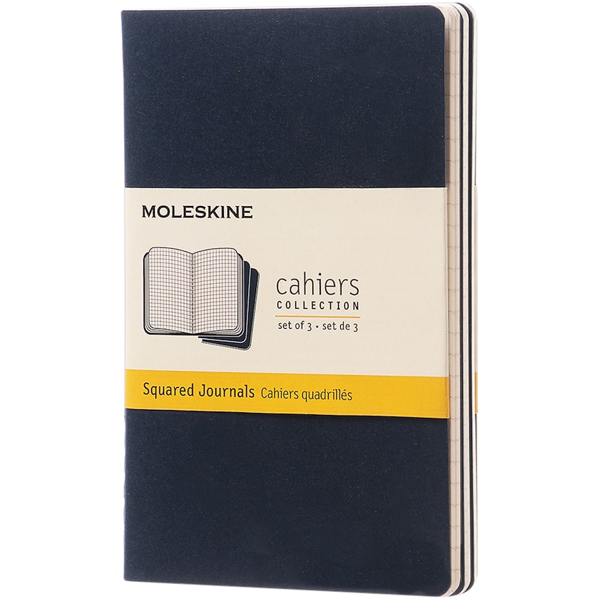 Kariertes Notizbuch von Moleskine. Notizbuch mit sichtbarer Naht. Die Seiten sind elfenbeinfarben und unliniiert. Die letzten 16 Seiten sind raustrennbar. Druck nur in einer Farbe.