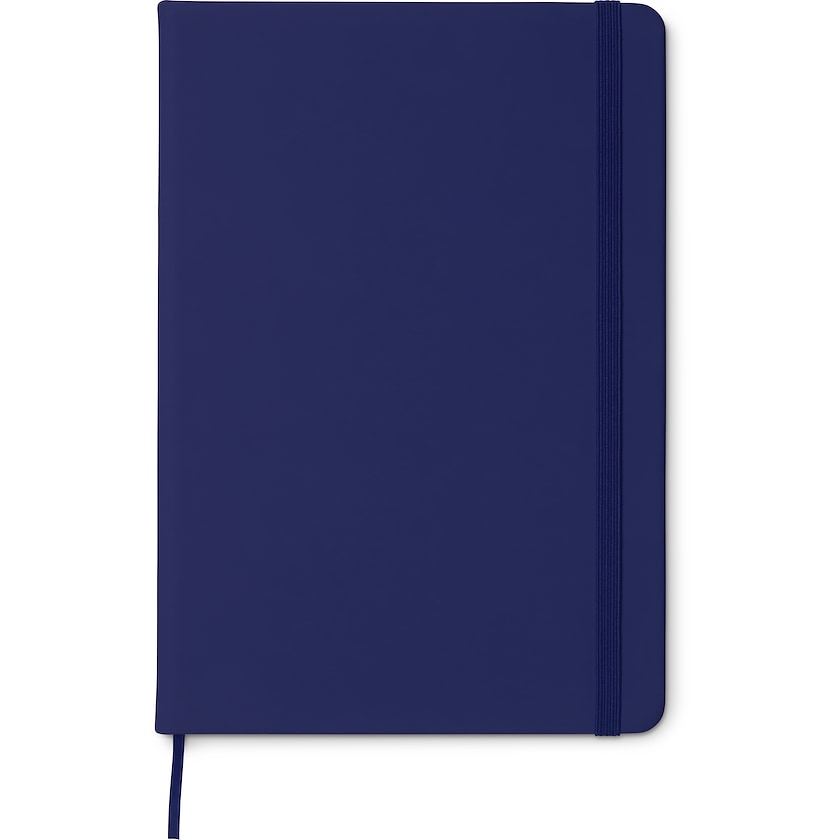 Schreibblock im A5 Format mit Kunstlederumschlag und unbedruckten Blättern. Der Umschlag hat einen Gummiband Verschluss.
