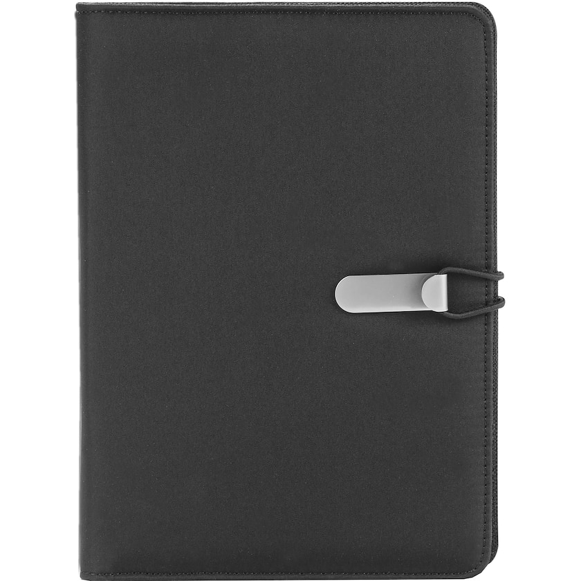 Konferenzmappe in A5 mit einem schönen, ausgefallenen Verschluss. Konferenzmappe hat eine große und zwei kleinere Taschen.