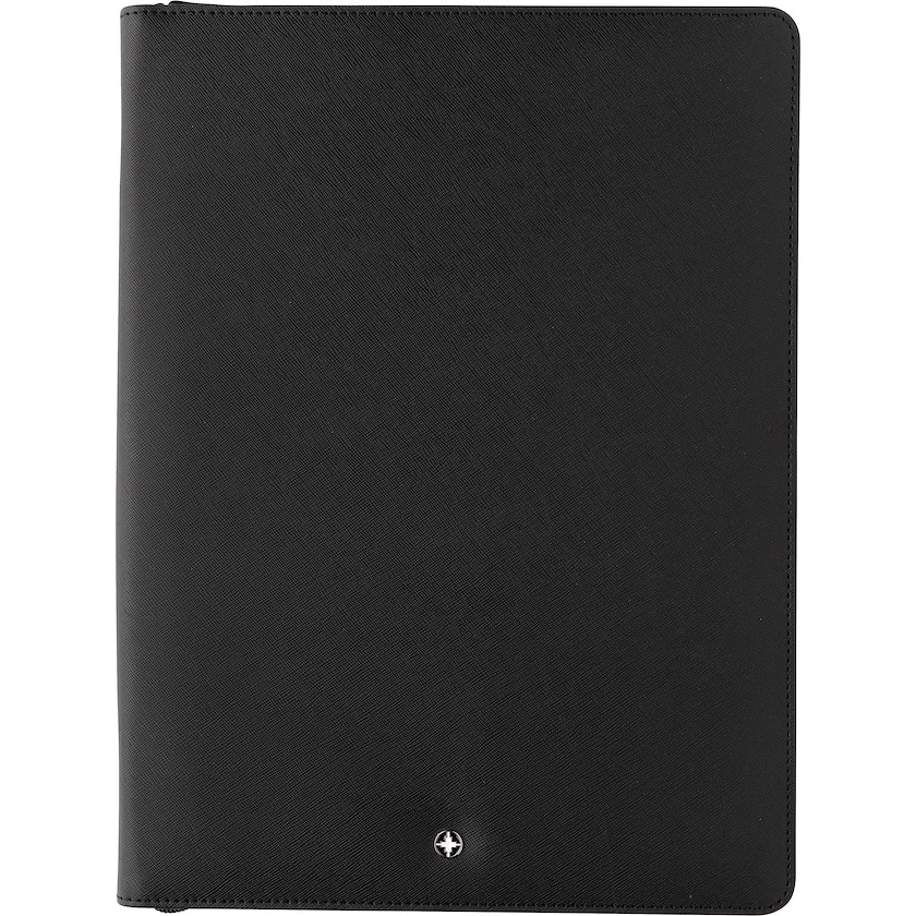 Umweltfreundliche Konferenzmappe von Swiss Peak. Die Konferenzmappe besteht aus recyceltem Polyurethan. Im Inneren befindet sich ein Schreibblock mit 20 linierten Blättern aus umweltfreundlichem Steinpapier.