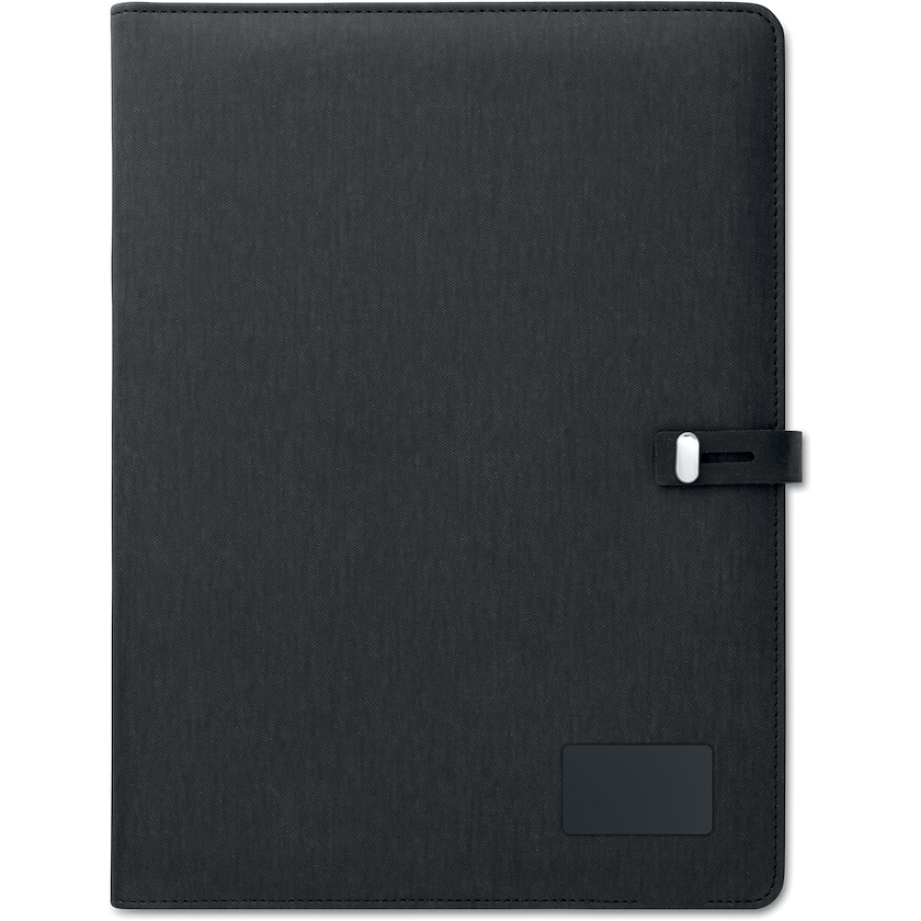 Konferenzmappe mit eingebauter Powerbank. Die Konferenzmappe beinhaltet einen Schreibblock mit 20 linierten Blättern. Die Powerbank hat eine Kapazität von 4000 mAh. Das Aufladen kann entweder drahtlos oder über einen USB- oder Typ-C-Anschluss erfolgen.