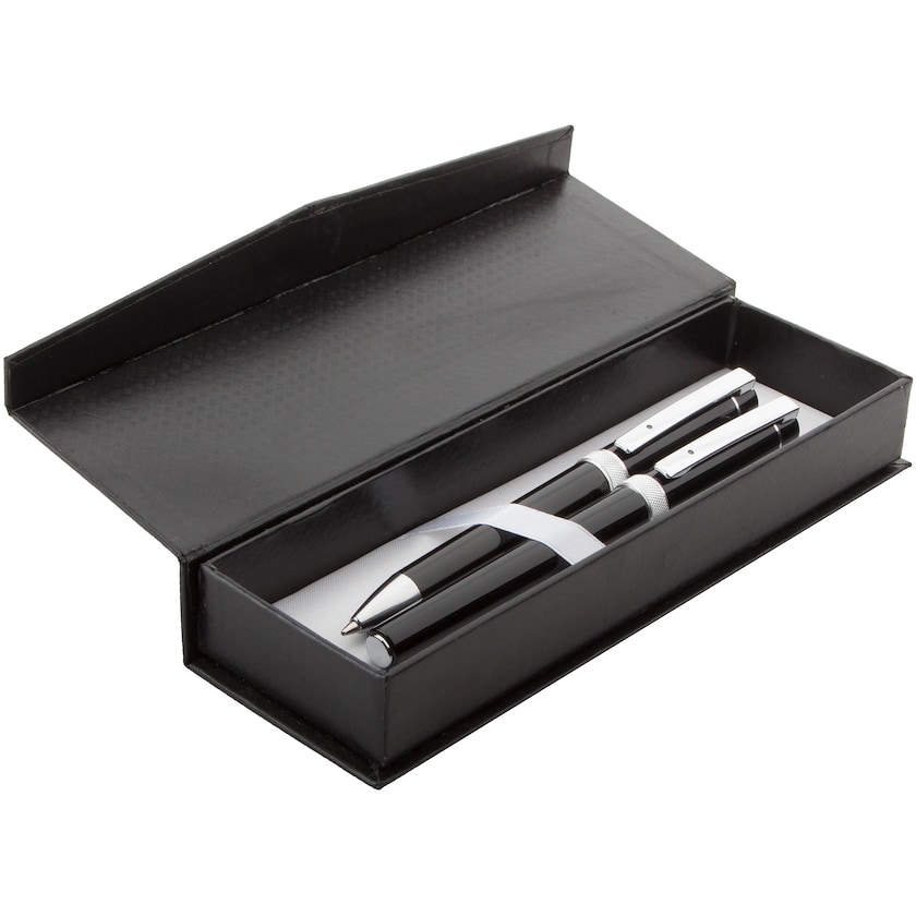 Feines Schreibset, besteht aus Kugelschreiber und Füller in Aluminium.