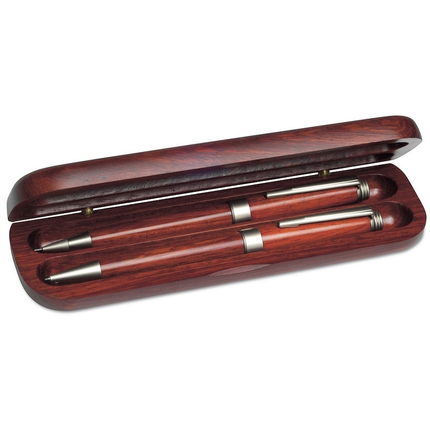 Exklusives Schreibset, Stifte und Schachtel aus schönem Holz. Set enthält Kugelschreiber und Druckbleistift.