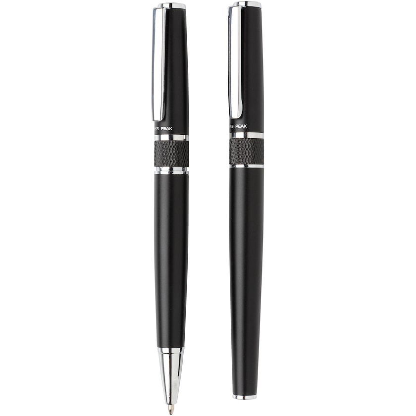 Luxuriöses Stiftset mit eigenem Druck von Swiss Peak. Das Set enthält einen Tintenstift und einen Kuggelschreiber. Die Stifte werden in einer eleganten Aufbewahrungsdose und einer Geschenkverpackung geliefert. Der Preis gilt nur für das Marken eines der Stifte.