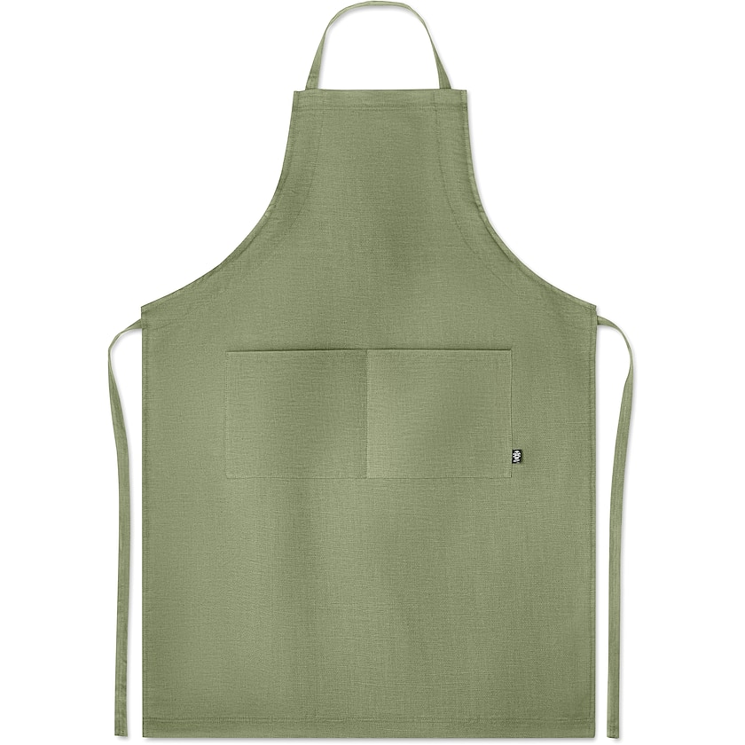 Robuste Schürze aus Hanf. An der Vorderseite befinden sich zwei Taschen. Hanf erinnert an Leinen, ist aber dreimal stärker als Baumwolle. Hanf ist außerdem eine umweltfreundliche Alternative, da der Anbau weder Kunstdünger oder Schädlingsbekämpfungsmittel erfordert. Überdies nimmt Hanf mehr Kohlendioxid auf, als beim Anbau entsteht.