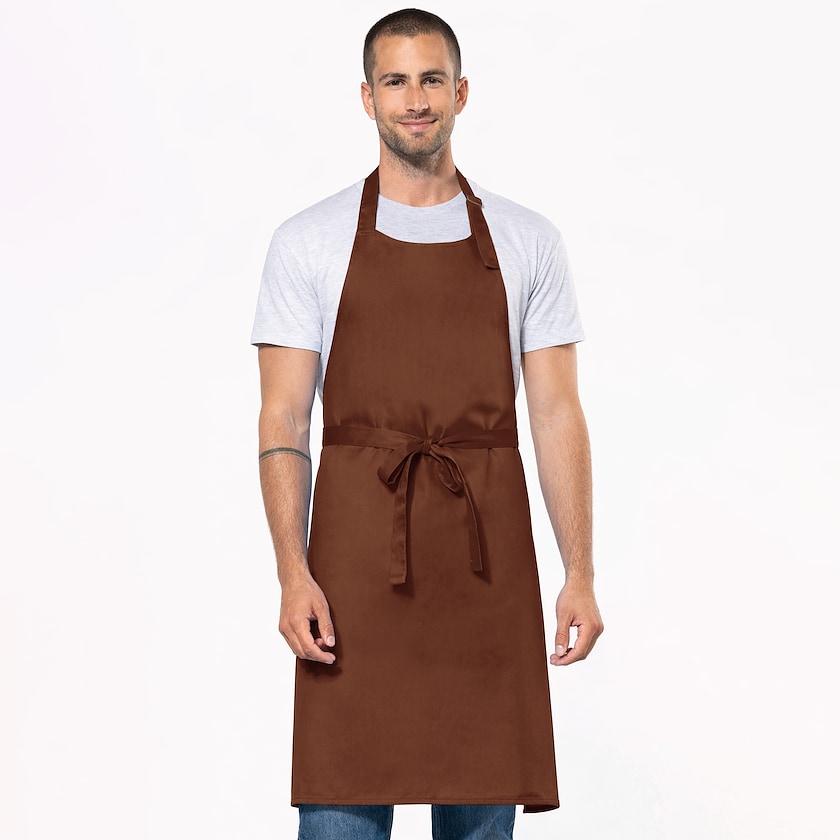 Hochwertige Schürze aus einer Polyestermischung. Die Schürze kann bis 60° gewaschen werden. Die Schürze ist 90 cm lang und 76 cm breit. Die Schürze hat keine Taschen.