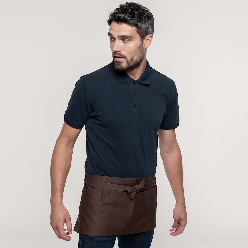 Kurzschürze in vielen schönen Farben. Schürze aus 100 % Baumwolle. Die Schürze ist 26 cm lang und 70 cm breit. Die Schürze hat drei Taschen.