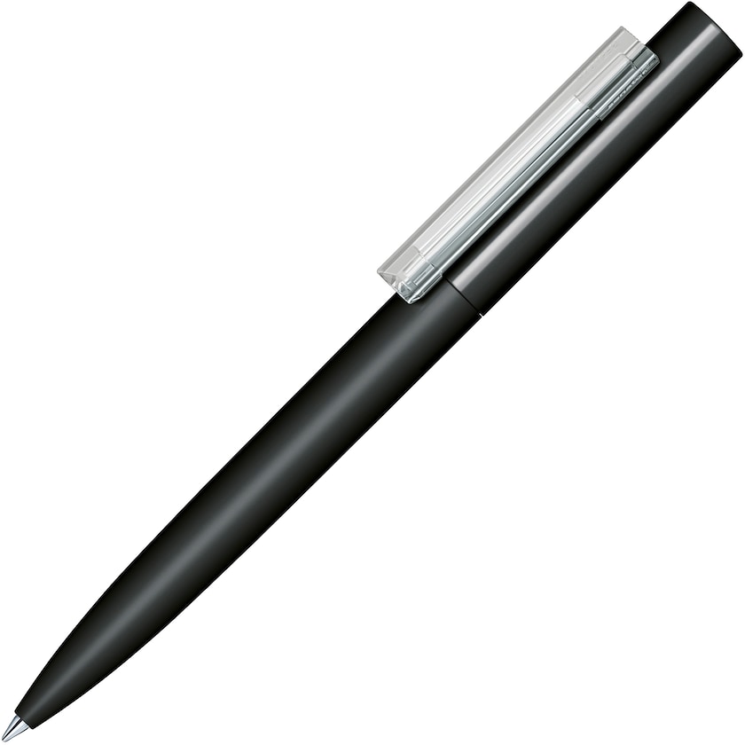 Einzigartiger Kugelschreiber, oben glänzend und unten mit Soft-Touch-Oberfläche. Der Clip ist transparent. Wählen Sie zwischen blauer oder schwarzer Tinte. Ein wirklich einzigartiger Stift mit dem man sehr angenehm Schreiben kann.