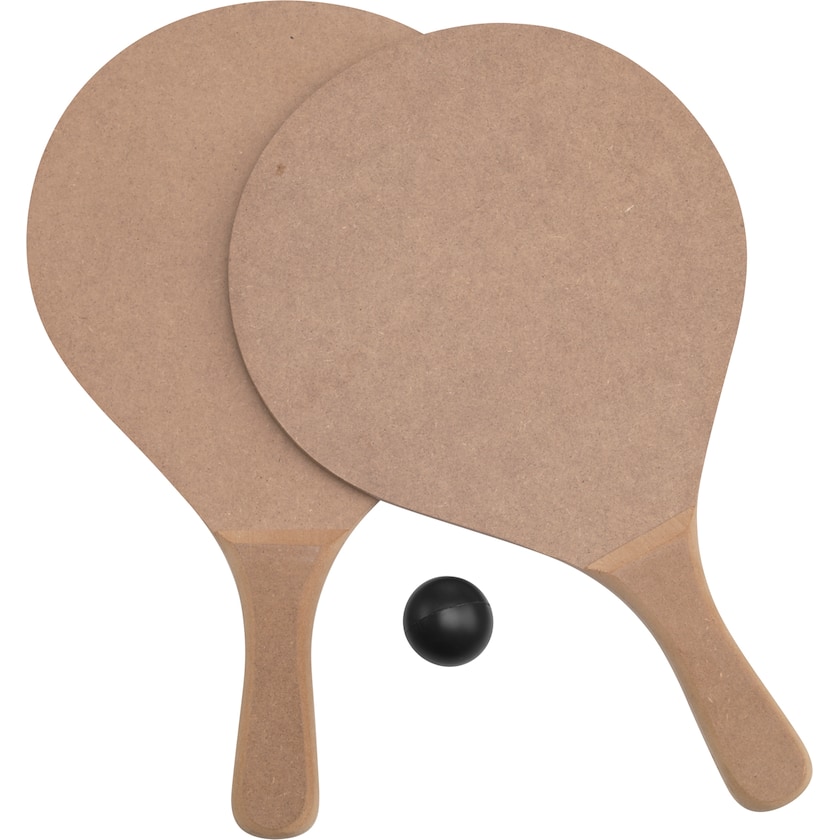 Das Set besteht aus zwei Strandtennisschlägern und einem Gummiball. Dieses bedruckbare Set mit Strandtennisschlägern wird in einer praktischen Aufbewahrungstasche aus Baumwolle geliefert. Der angegebene Druckpreis bezieht sich auf den Druck auf beiden Schlägern.