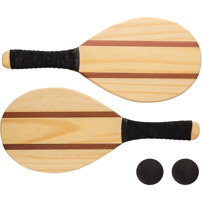 Hochqualitatives Strandtennis-Set aus Holz. Whitby besteht aus Kiefernholz mit Splintholzelementen. Zwei Bälle und ein Aufbewahrungsbeutel aus Baumwolle sind im Lieferumfang enthalten. Geliefert in einem stilvollen Pappkarton. Gedruckt wird auf den Aufbewahrungsbeutel.