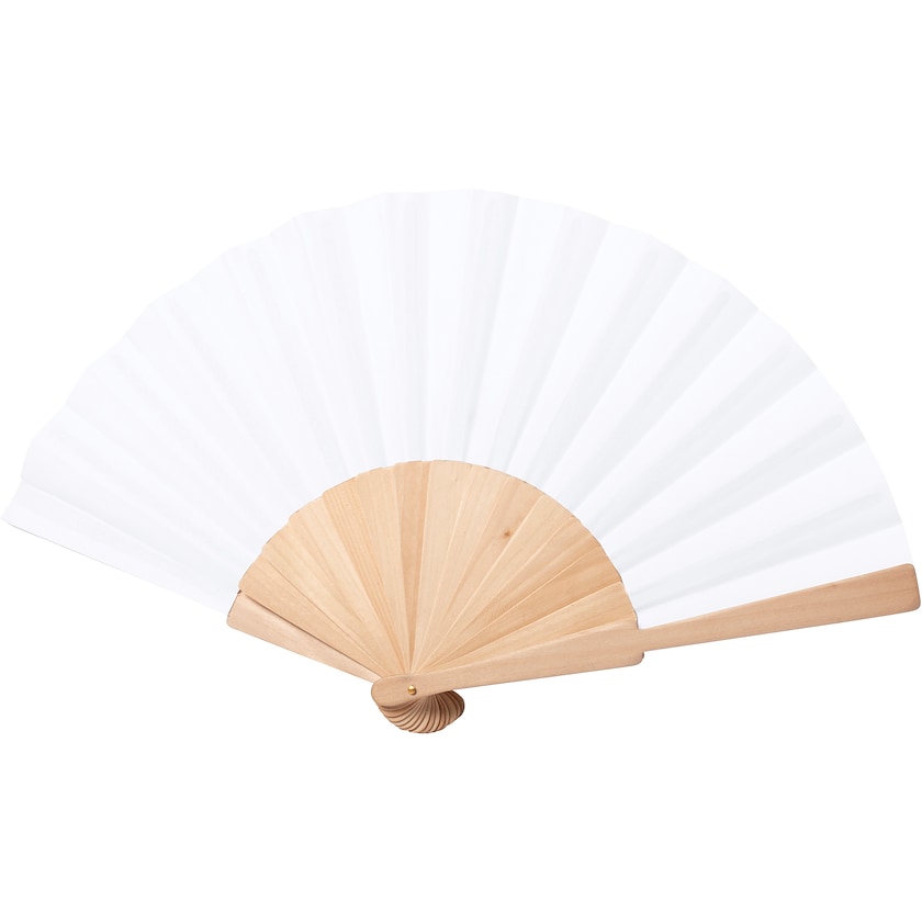 Umweltfreundlicher Fächer . Fächer Cudillero ist aus rPET, sprich aus recycelten PET-Flaschen, und Bambus. Vor allem im Sommer beliebt und eine umweltfrendliche Wahl. Das Logo wird auf einer Seite aufgebracht.