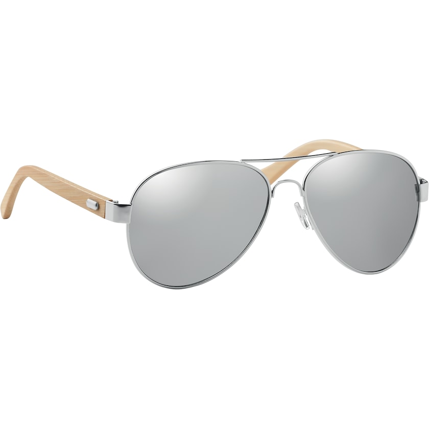 Sonnenbrille im klassischen Piloten-Style. Das Brillengestell ist aus Bambus und die Gläser sind in verschiedenen Farben erhältlich. Die Brille hat einen UV400-Schutz. Geliefert in einer farblich passenden Mikrofaser-Brillentasche. Die Lasergravur erfolgt auf den Brillenbügeln und der Druck auf der Brillentasche.