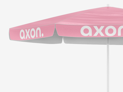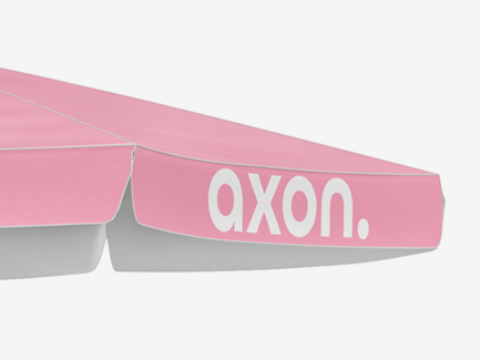 Axon führt sowohl individuell angefertigte Sonnenschirme als auch Modelle aus Lagerbeständen. Die Spezialanfertigungen kann man komplett bedrucken - die gesamte Schirmfläche ist bedruckbar. Die Lagerware verfügt über ein begrenzte Druckfläche, aber dafür kürzere Lieferzeiten. Außerdem sind Bestellungen schon ab kleiner Mindestmenge verfügbar.