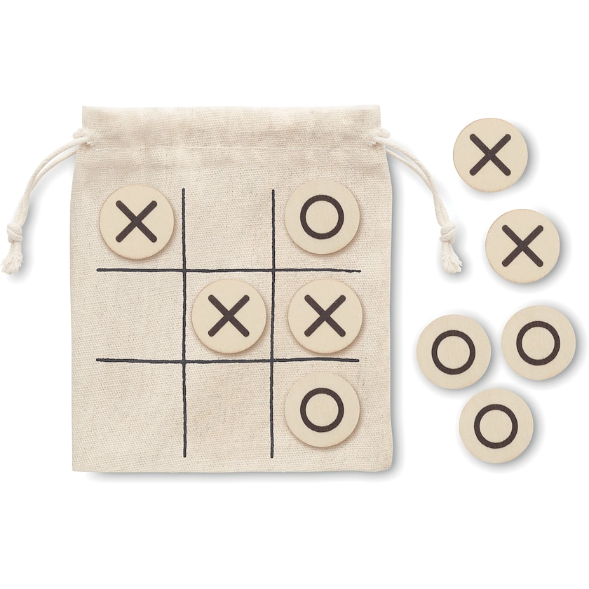 Hobo-Schach aus Holz in naturfarbener Baumwolltasche. Der Druck erfolgt auf dem Baumwollbeutel.