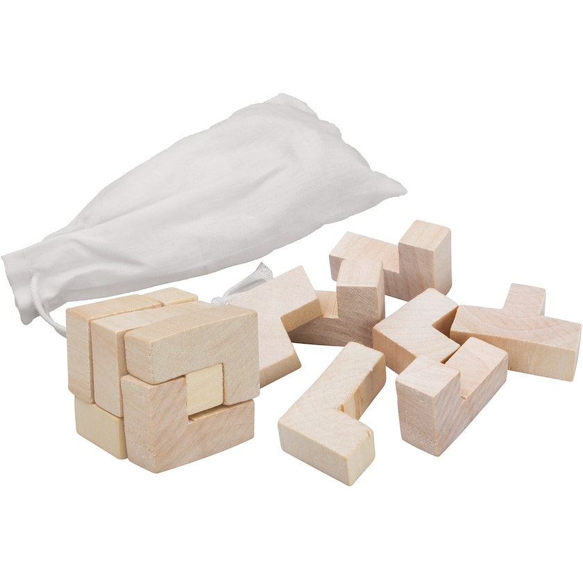 IQ-Spiel aus Holz in naturfarbener Baumwolltasche. Ein sehr preiswertes Spiel, das Ihr Gehirn fordert! Wählen Sie zwischen Aufdruck oder Lasergravur. Der Druck erfolgt auf dem Beutel, die Lasergravur auf den Steinen.