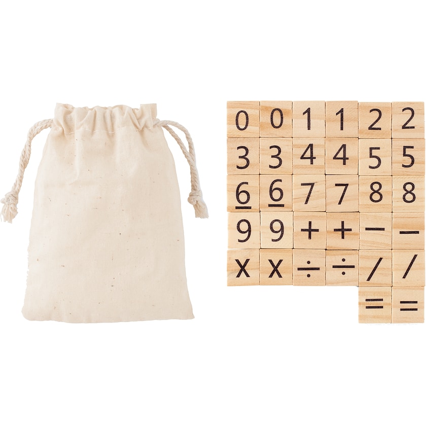 Ein Spiel, das die Rechenkunst von Kindern fördert. Das Set enthält 32 Holztäfelchen und eine Aufbewahrungstasche aus Baumwolle. Ein perfektes Geschenk für jüngere Kinder!