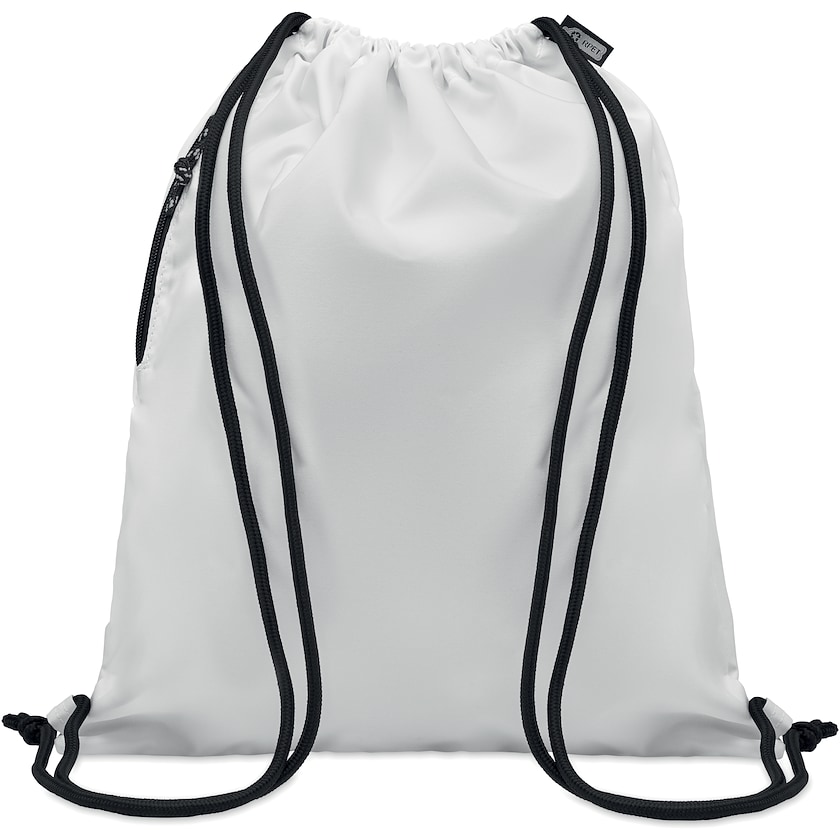 Großer Turnbeutel aus recyceltem Material. Der Stoff von Archbold besteht aus rPET, also recyceltem Polyester. Auf einer Seite befindet sich eine Reißverschlusstasche. Die Schnürsenkel sind extra dick.